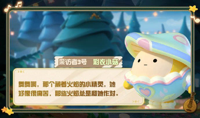 奇境森林狂欢节陷入了神秘的“循环”之中,为了探寻这场神秘循环的真相,皮蛋深入观察,竟发现了流火精灵舞舞隐藏的秘密,通过采访森林居民获取的情报逐渐在脑海中拼凑,舞舞不为人知的过往逐渐清晰起来。
