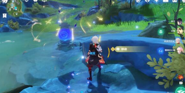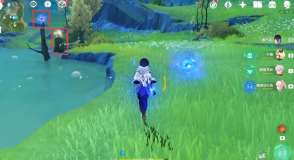 拾取旁边的「水种子」站在水中等待几秒或者用水元素角色释放技能