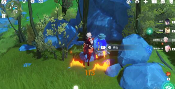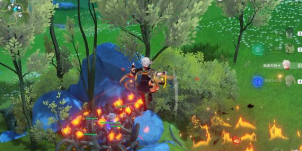 1、使用火元素角色烧掉藤蔓,或者使用风元素角色扩散旁边的烈焰花