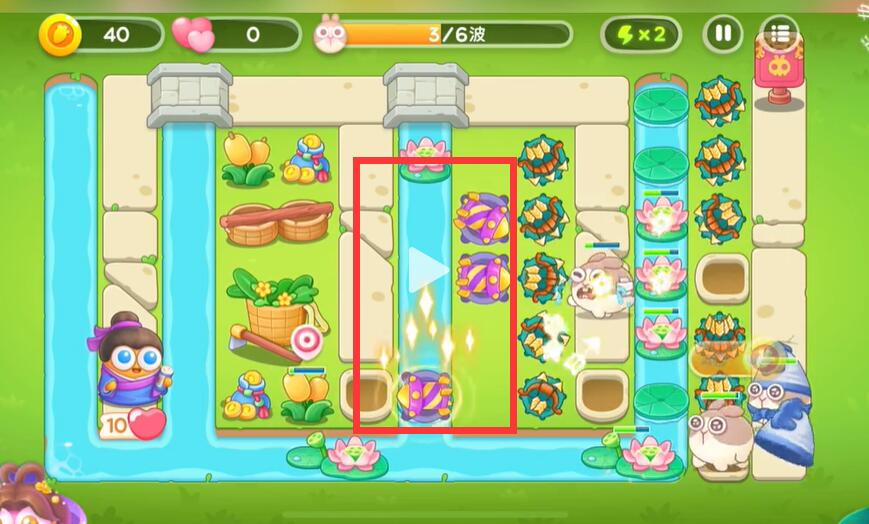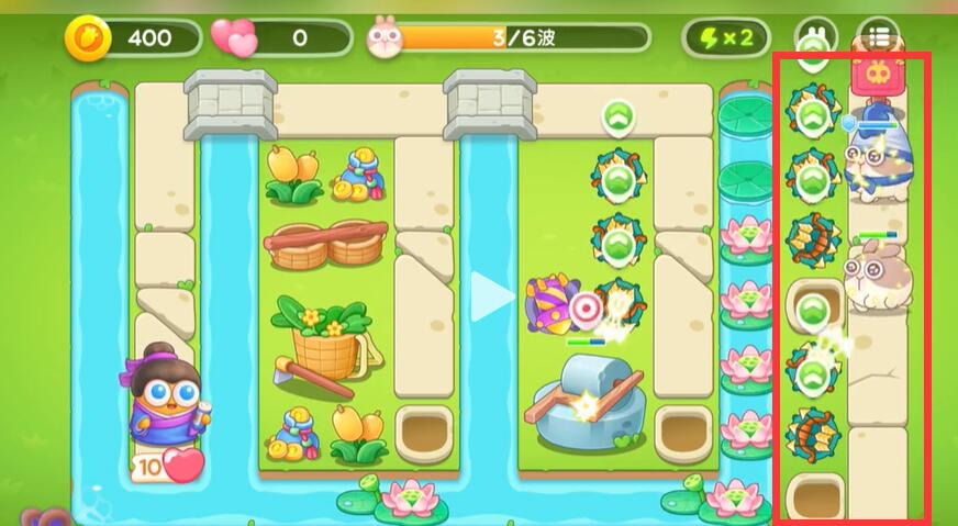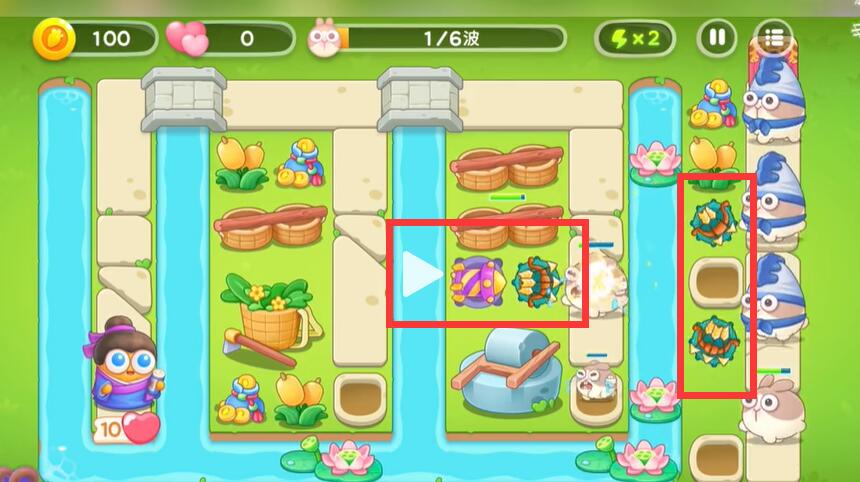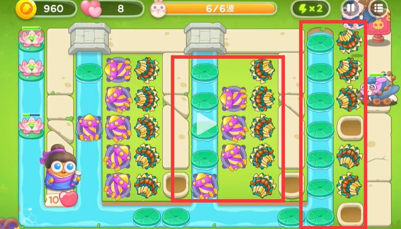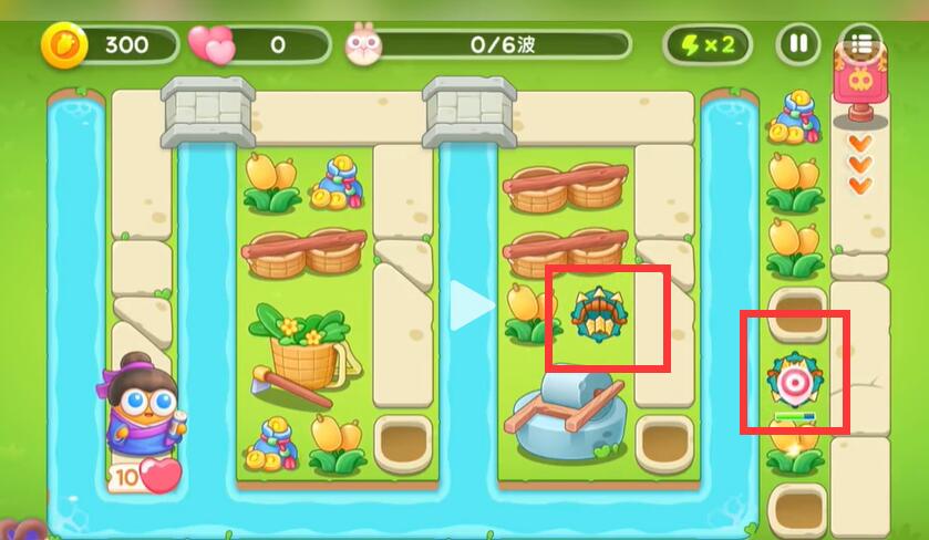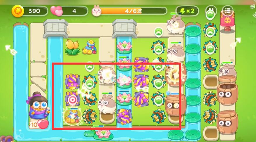 4、中间的道路上放上一定的满级炮塔打飞出来的兔子。