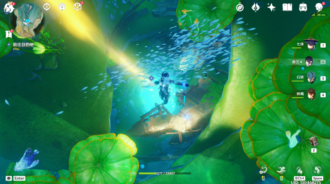 1.对完话,可以直接传送到附近,跟着指引方向往下潜到最下面,借助水环快速移动