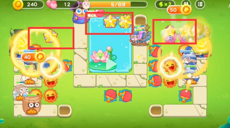 7、有金币的话就在池塘里多多的放置一些炮塔就可以了。