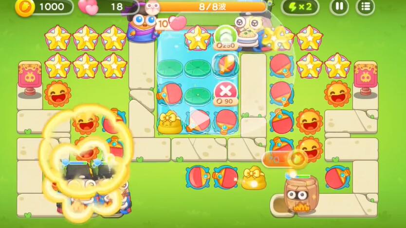 1、在右边的出口放置一个太阳可以将这里的兔子与建筑全部清理。