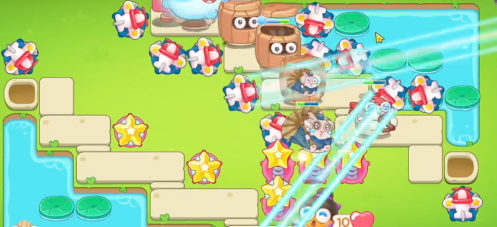 1、首先开局的话我们只要建造少量的飞机塔和星星塔在下面的位置就可以了,然后要抓紧清理障碍物,这一关的障碍物似乎是比较多的。