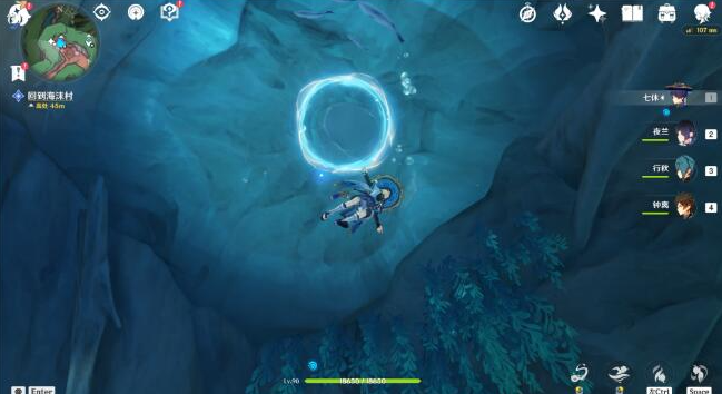 3、玩家继续跟着指引走穿过水漩涡,即可获得隐藏成就两万里格的漫游,借助这个水环可以快速到达目的地。