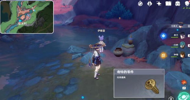 2、第2个玩家需要跟着指引靠近瑟琳,对完话后就会获得1个零件。