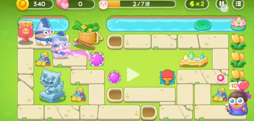 1、开局前期只需要放置一两个魔法球然后升级即可。