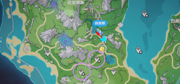 1.我们在地图上找到两处未开启的锚点,从大的传送点往上走有一处水坑。