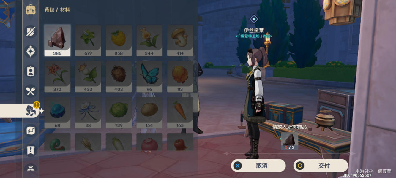 然后我们对话完,陪他去找伊丝黛莱小姐拿部件,对话过后还差材料,提交3铁矿。她当场打。