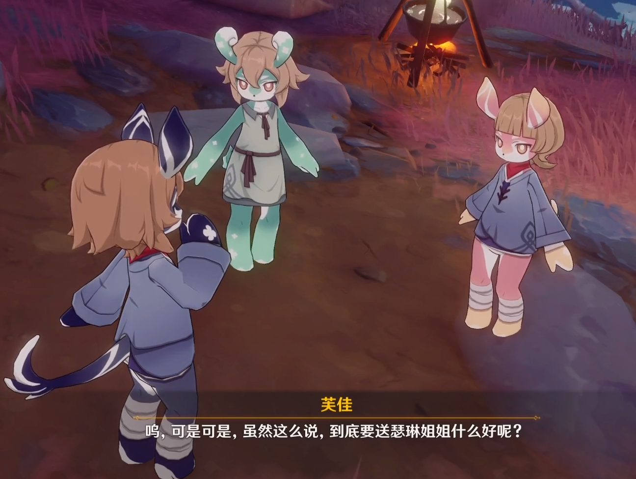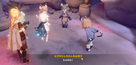 当我们做完美露莘系列全部任务以及其后续,也收集齐全部“奇特的零件”后,靠近海沫村就会触发这段最后的剧情对话——给瑟琳过生日,三小只一起做饭。