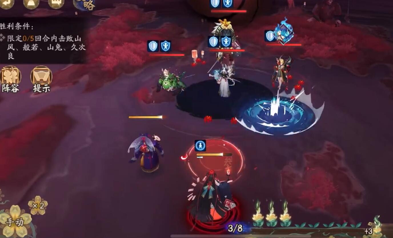 萤草普攻鬼使黑→食灵三技能喂饭彼岸花→彼岸花普攻鬼切→萤草普攻铁鼠→食灵普攻鬼切