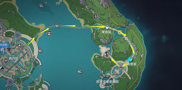 1、冰风组曲BOSS的位置如下图所示,大家可以按照下图所示的路线寻找这个BOSS并进行挑战;