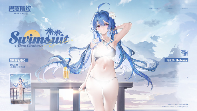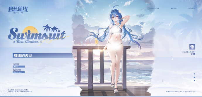 本次即将推出的新泳装皮肤隶属于海伦娜,具体的介绍语为:指挥官,你觉得我穿上这件泳衣后怎么样?嗯嗯,算了。如果我直接听到你的印象,我站在你面前会觉得非常不好意思的……所以你介意…悄悄地对我耳语说吗?海伦娜很希望得到指挥官的评价还有认可。
