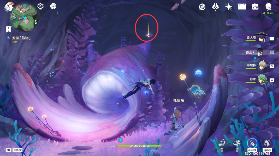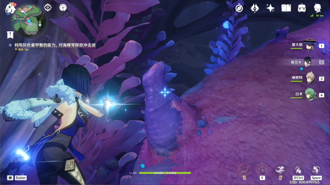 10.利用异色重甲蟹的能力.对海螺琴释放冲击波:靠近一些,用螃蟹的战技打这个凸起部位。