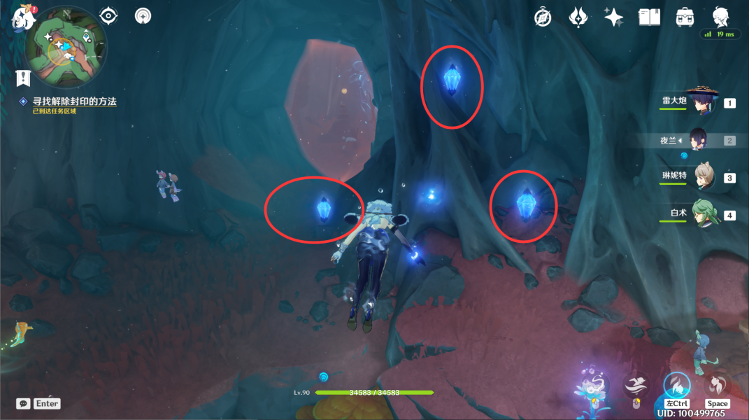 4.寻找解除封印的方法:使用普攻键瞄准攻击接触三个机关。