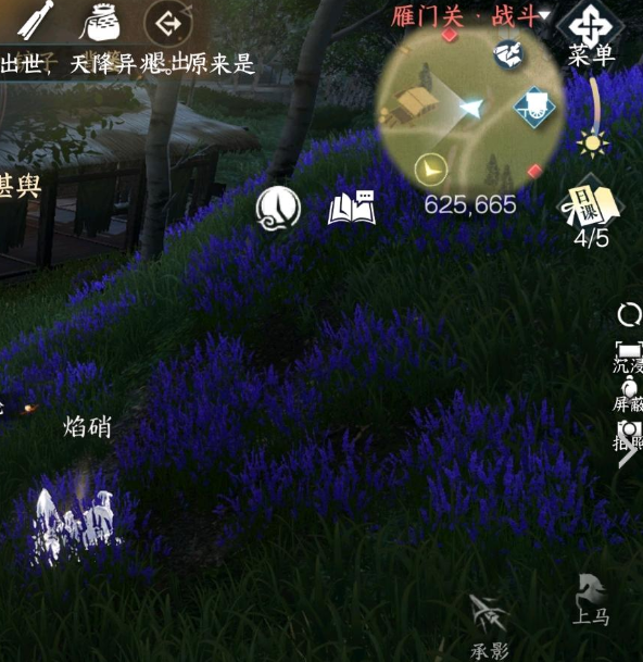 前往雁门关战斗分线进行采集,注意只有在战斗分线才会有焰硝,同理紫竹也只有在战斗分线才有。
