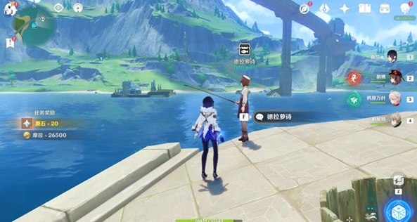 (3)回到岸上与德拉萝诗对话即可完成任务,奖励原石*20。