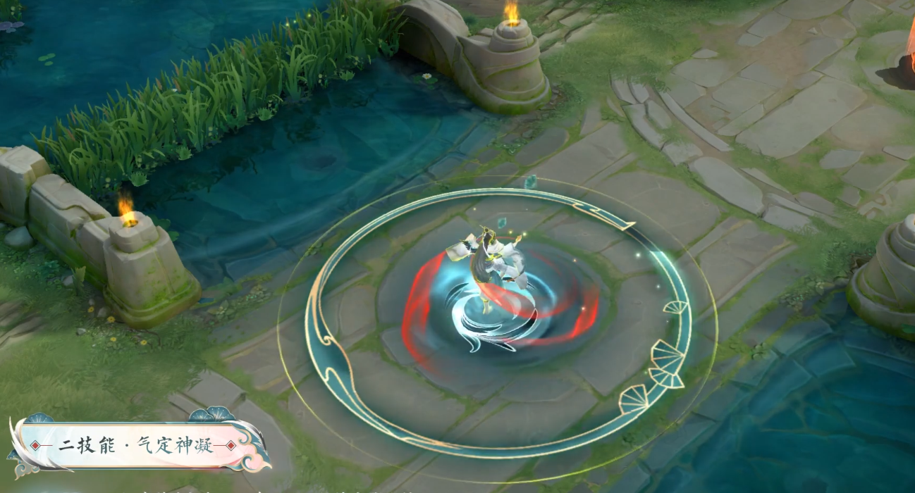 一技能:怀真出掌成风,青红相间的旋风裹挟着敌人移动;