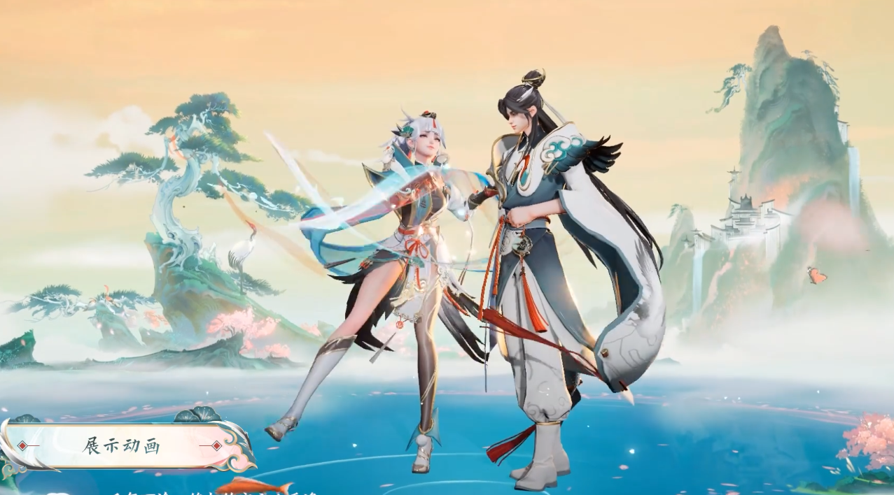 整体的场景美术风格在传统水墨山水画的基础上,保留一些国画笔触,搭配饱和度更高、色相更丰富的颜色,营造出更加温馨的场景氛围,契合七夕节日主题。