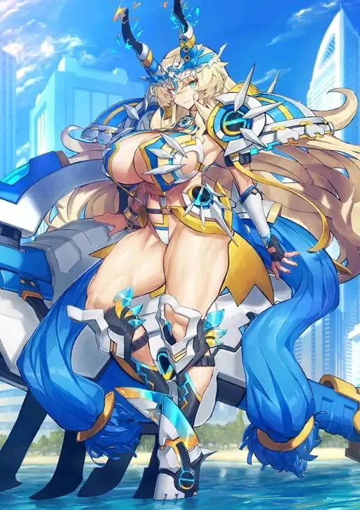 而在此突破后直接变成了超级机器人的装甲了,经典的机娘造型和设计,这腿部的盔甲看着更像是马蹄一样,装甲的外观还是那种有着泳装主题元素的设计,整体风格还是有点偏向于机战OG中的大曾迦。