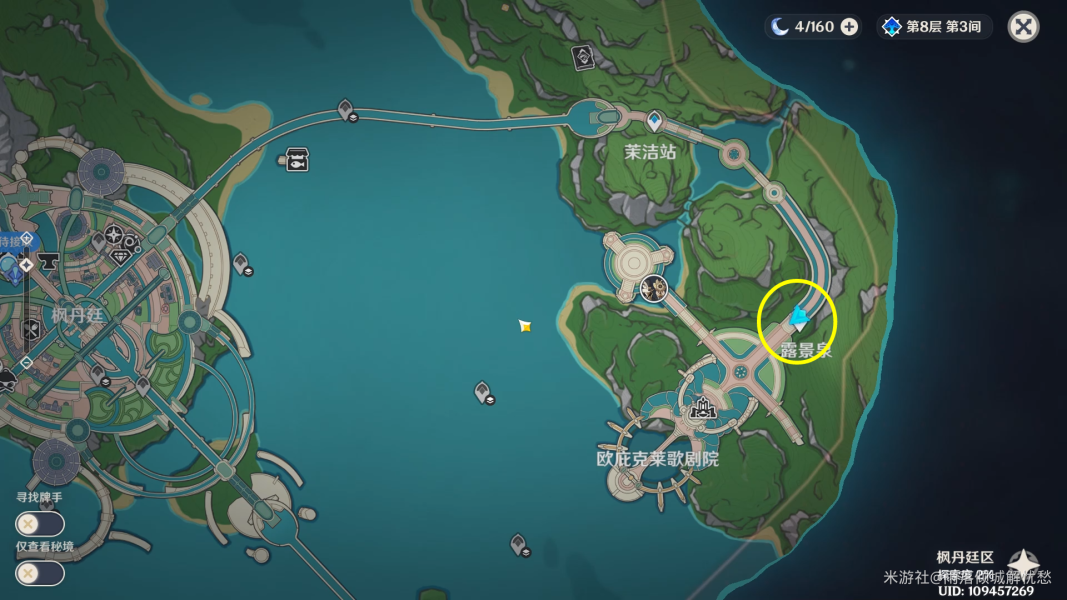 位于枫丹主城右侧的城区,可以沿着水道抵达。