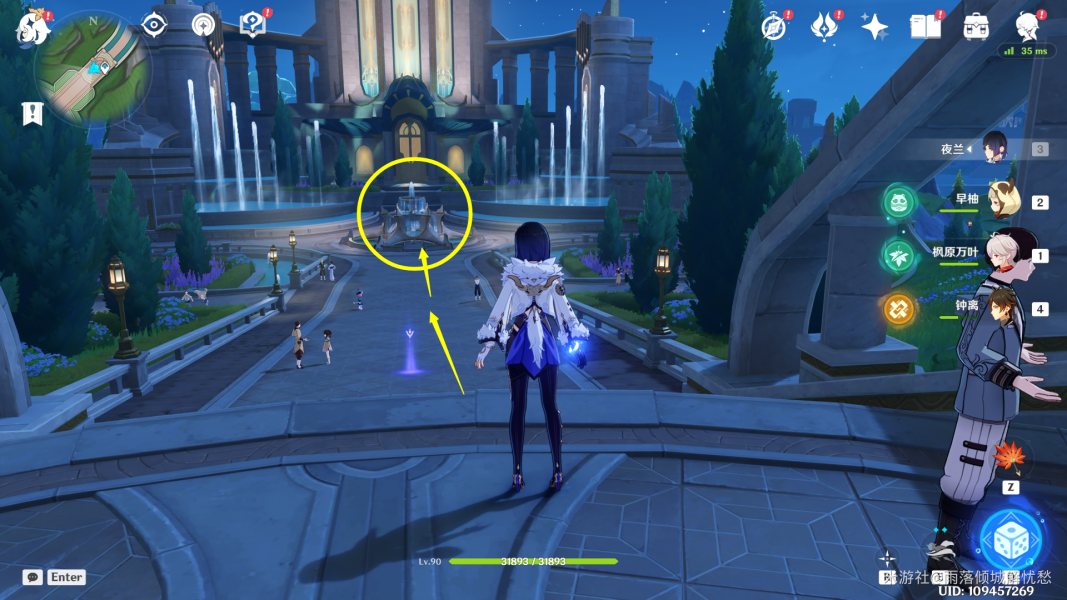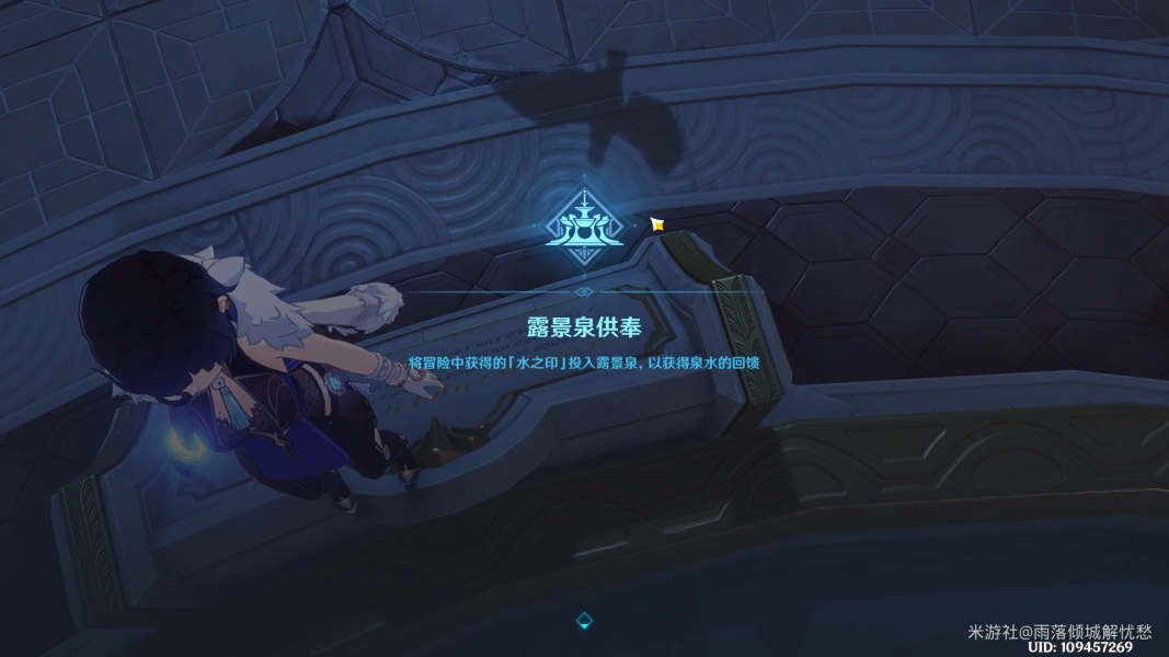 抵达传送点后,向前方走,来到喷泉前面就能解锁供奉池子了