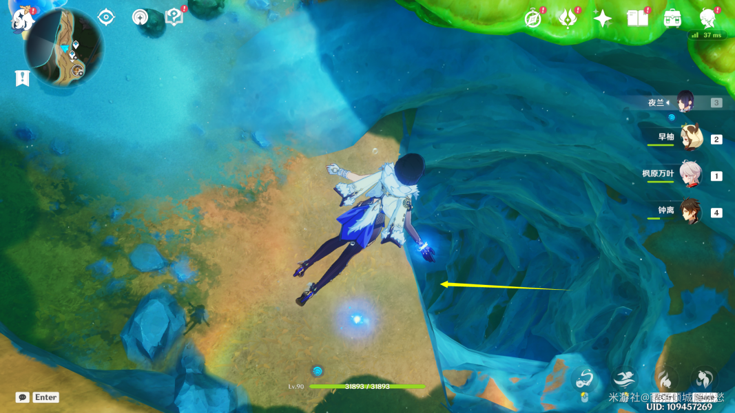 抵达传送点后,直接往前面进入潜水区域
