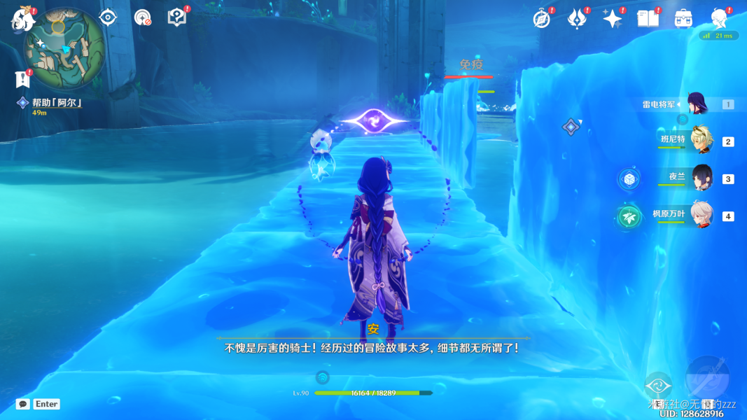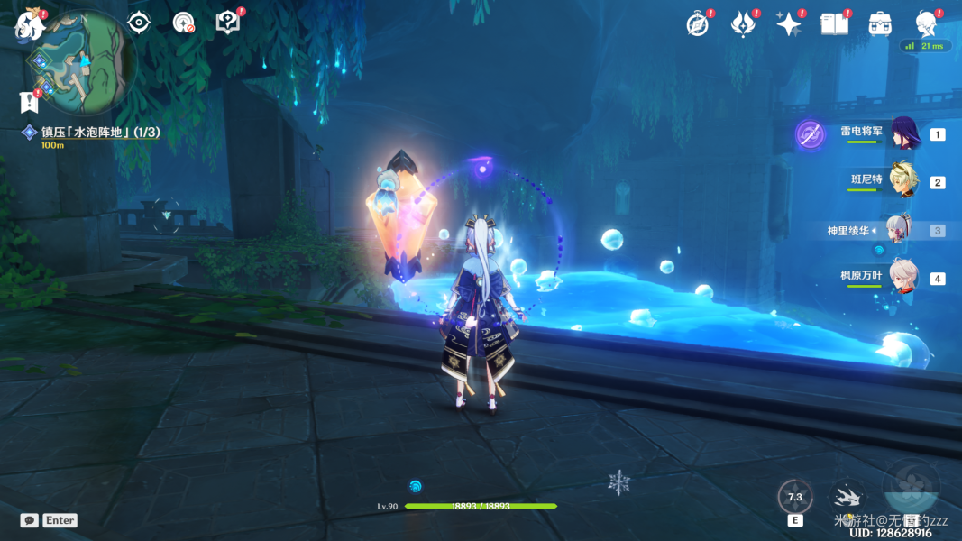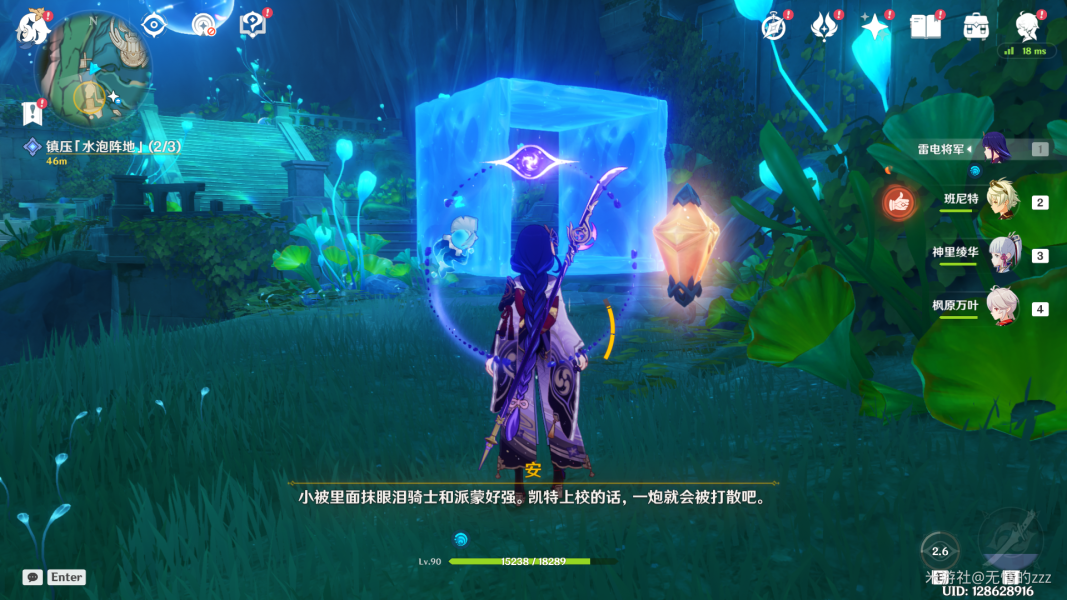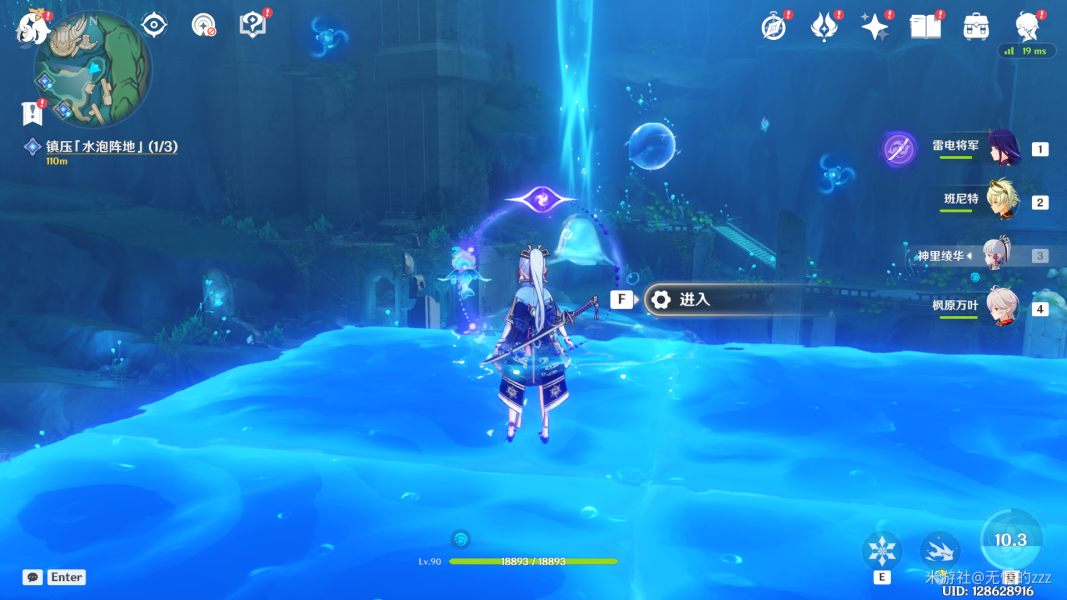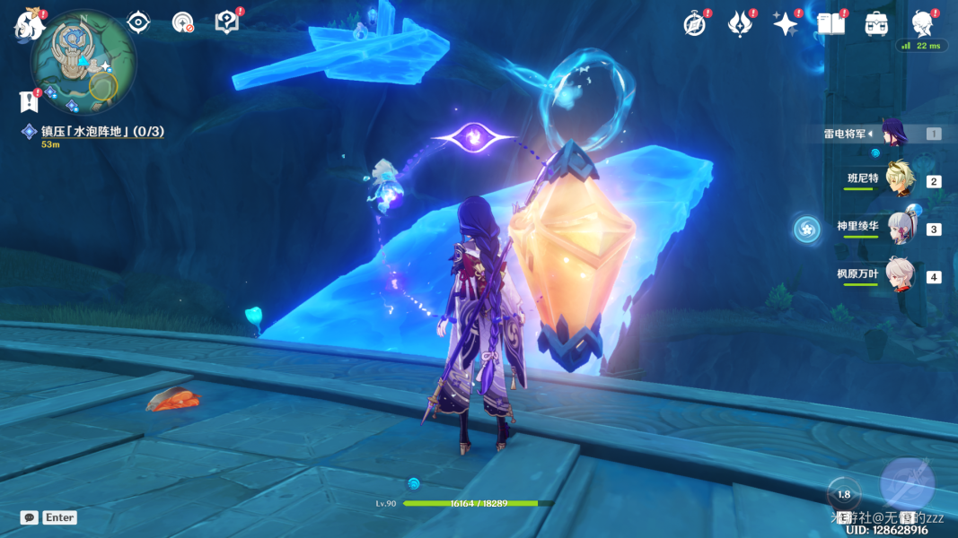 4.根据任务指引,攻击前方的水晶,从而形成屏障,保护自身安全,因为被水泡击中,会返回原位