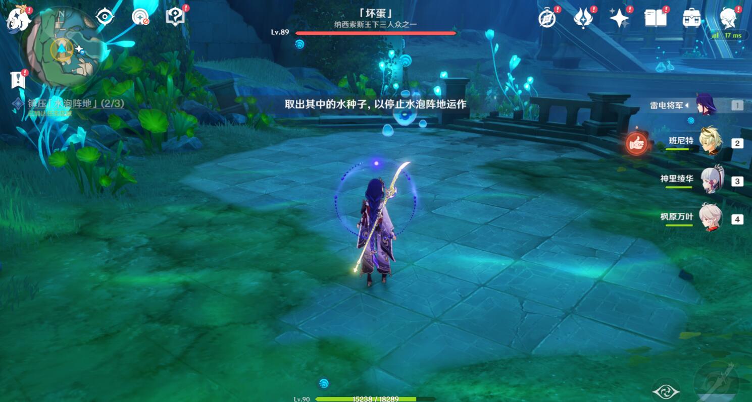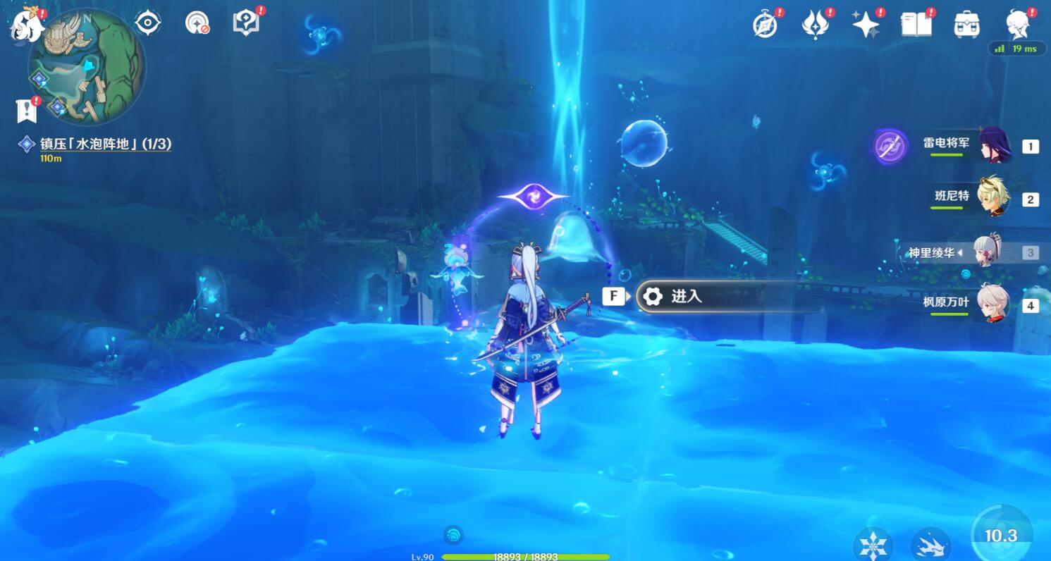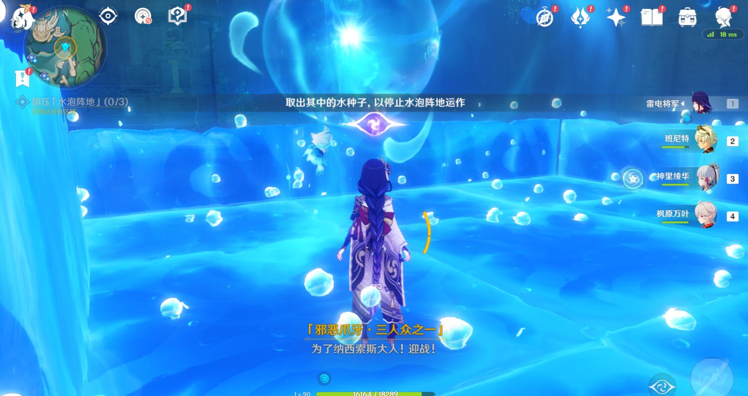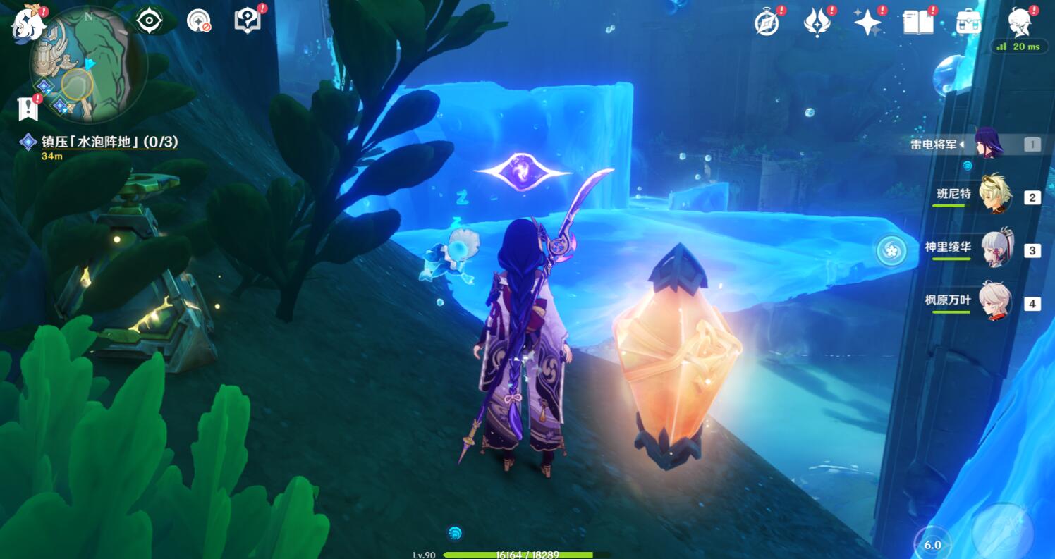 4.随后我们根据任务的指引,攻击前方的水晶,从而形成屏障,保护自身安全,因为被水泡击中,会返回原位