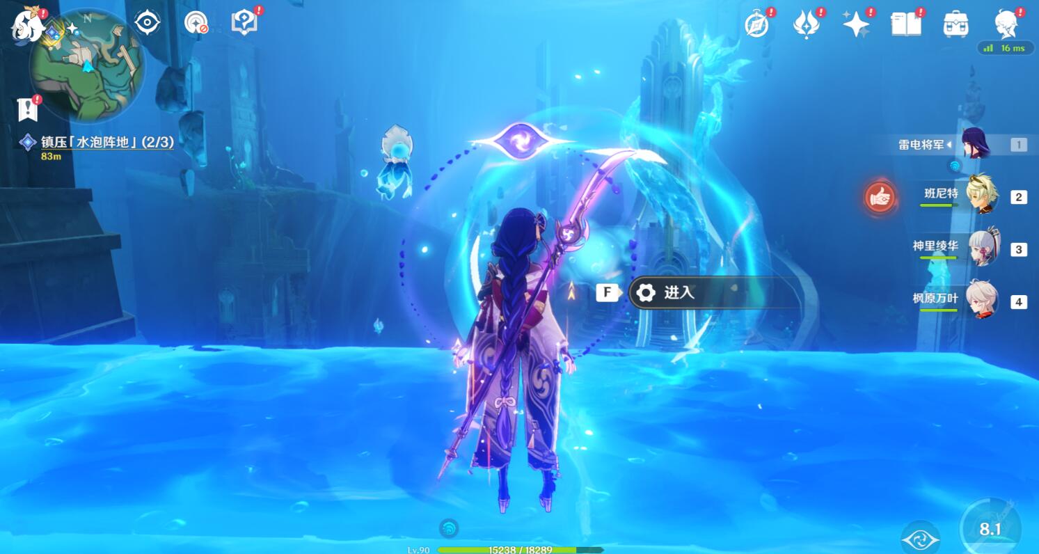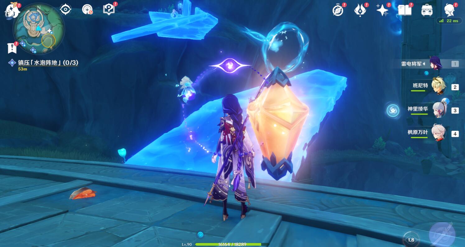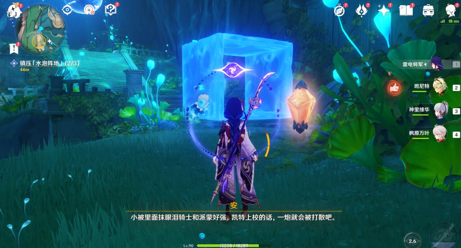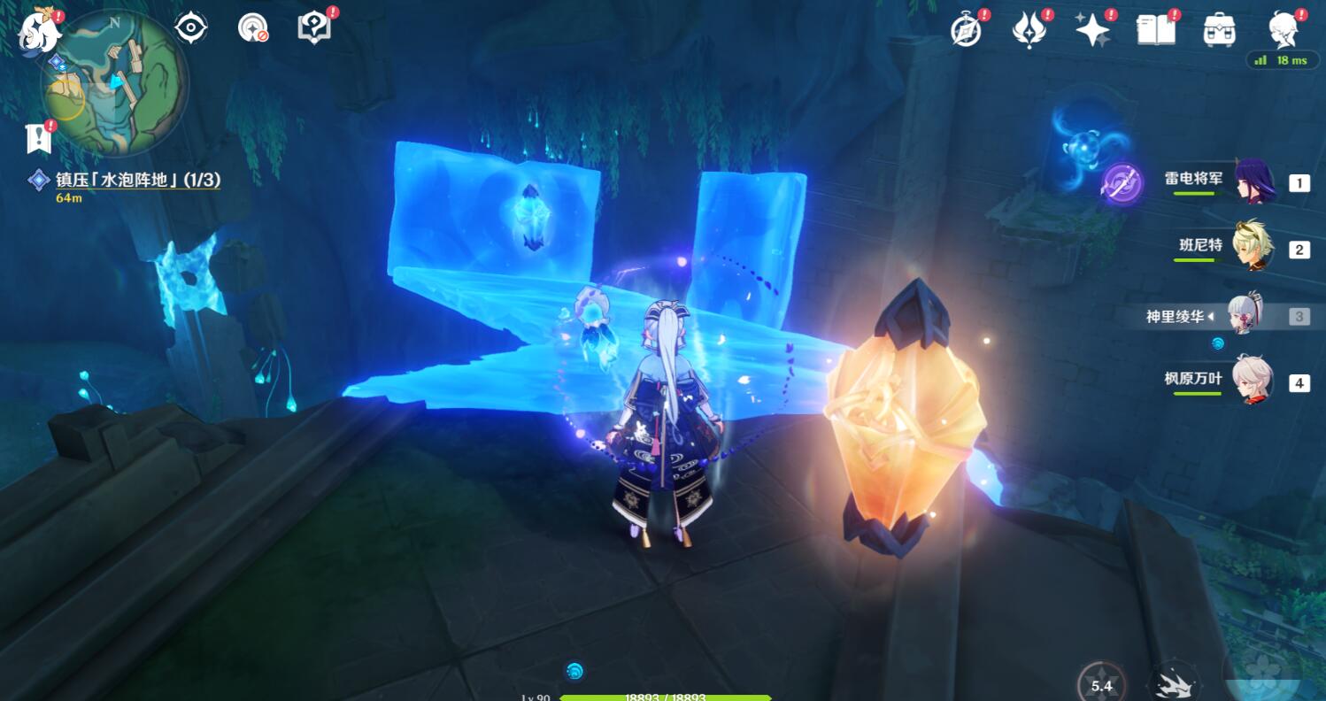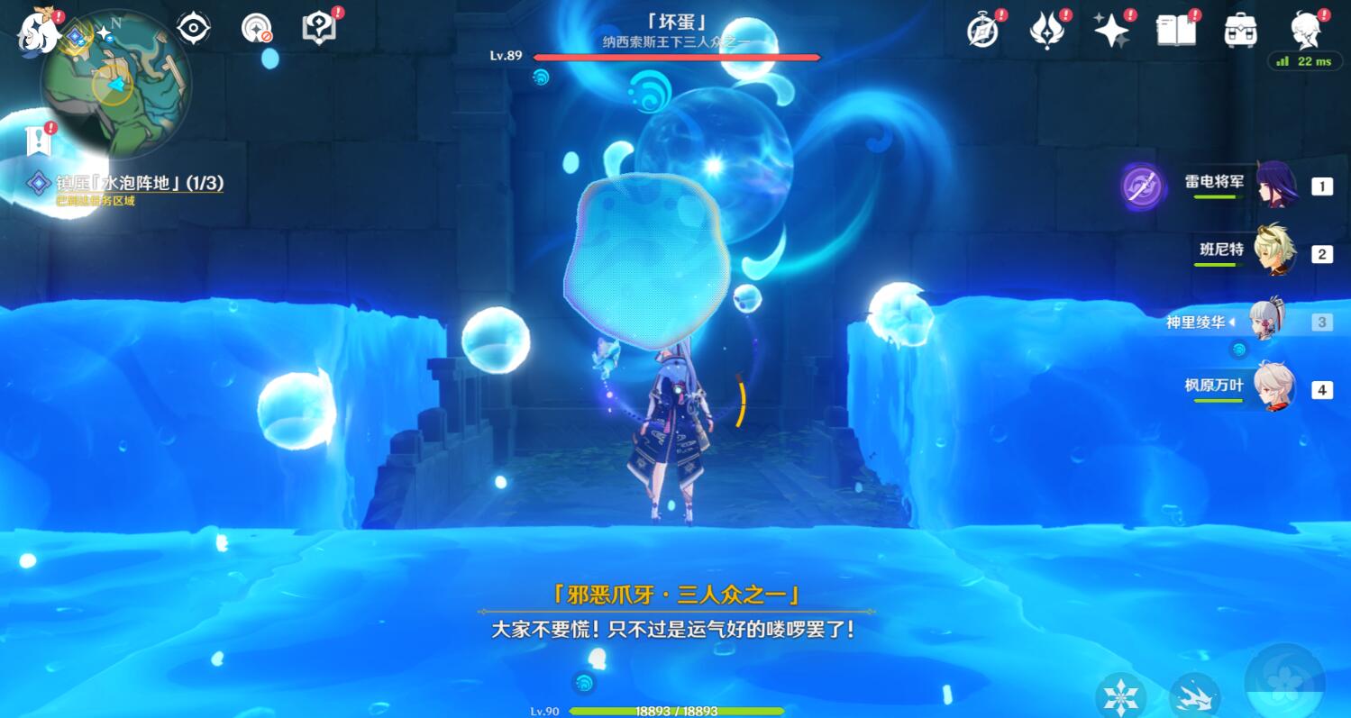 4.随后我们根据任务的指引,攻击前方的水晶,从而形成屏障,保护自身安全,因为被水泡击中,会返回原位