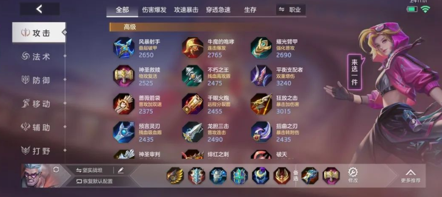 第三件,出正义壁垒可以抵挡对面物攻高爆发英雄,保证生存。