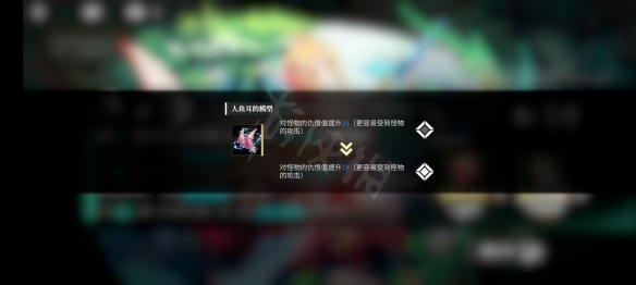 觉醒Lv.1:技能【逆浪】受到攻击时,额外提升弱点效率,饰品【人鱼耳的模型】觉醒等级提升。