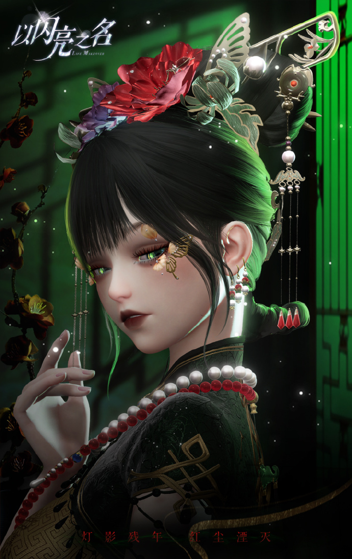 「痴梦无诉」裙身采用传统中式绸缎暗纹效果,在胸口,下身裙摆处添加绣花图案,更能体现出古典古韵,裙摆融合半透纱质,裙底添加刺绣图案,增加细闪设计,让整体更有设计感和氛围感,打破传统搭配,营造新中式时尚氛围。古典与新中式碰撞混搭,明媚张扬与幽暗神秘浑然天成。