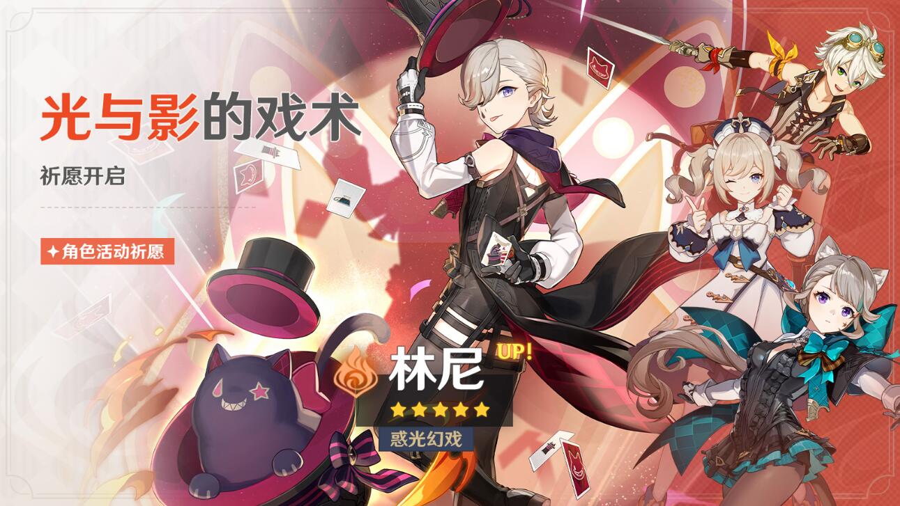 活动期间,限定5星角色「惑光幻戏·林尼(火)」「兰生幽谷·夜兰(水)」的祈愿获取概率将大幅提升!