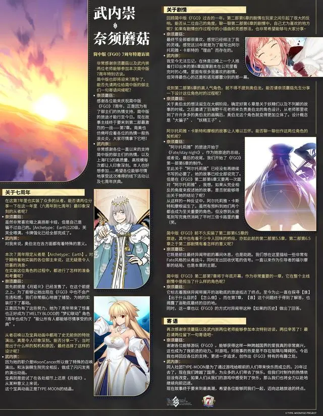 在现场公开了部分武内崇社长和奈须蘑菇的访谈内容,后续官博也是公开了访谈的全部内容,大家可以了解一下。