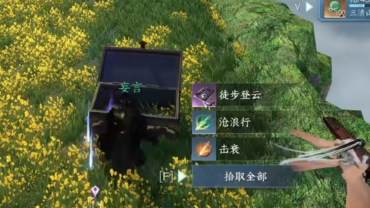 4、跳到宝箱的面前,把宝箱打开之后就可以获取到里面的奖励和徒步登云的技能。