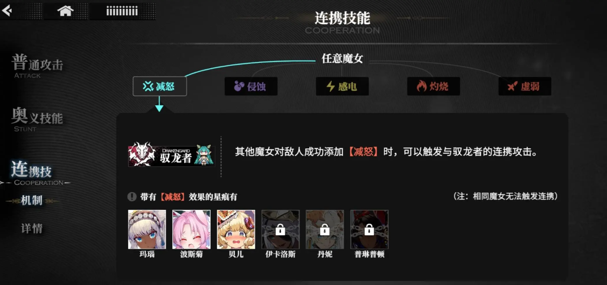 连携:队友释放技能产生连携所需负面时,与该队友发动一次对负面附着者的攻击。