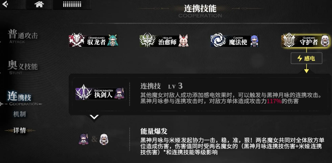 最后,连携技的上限其实会随着魔女技能等级提升一直拔高,个人认为是玩到后期都非常强力的流派。甚至我认为,这才是这个游戏设计的核心思路(个人再说一句,那个奥义技就是歌姬)。大家也可以把其它负面考虑进来,我这个应该是比较低成本的了。