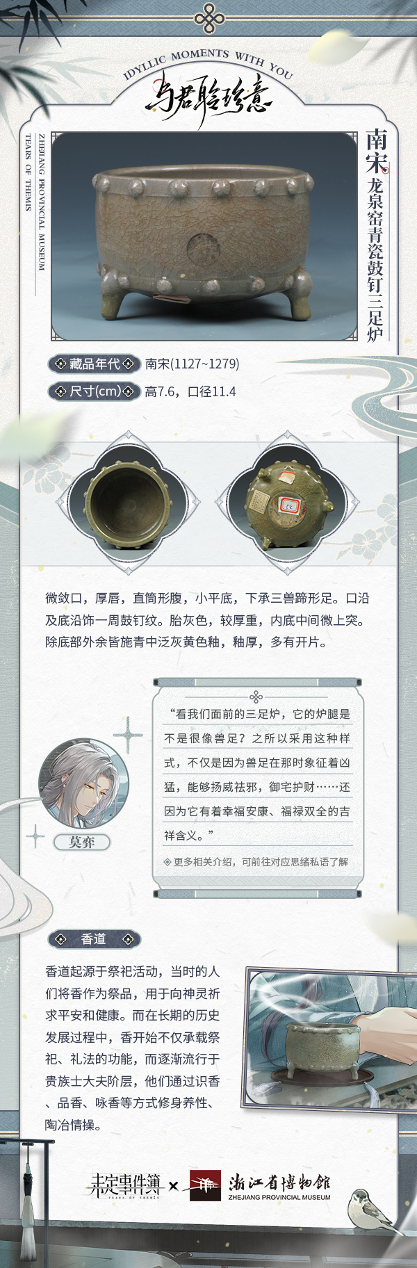 ※思绪中香炉原型为南宋龙泉窑青瓷鼓钉三足炉,现藏于浙江省博物馆