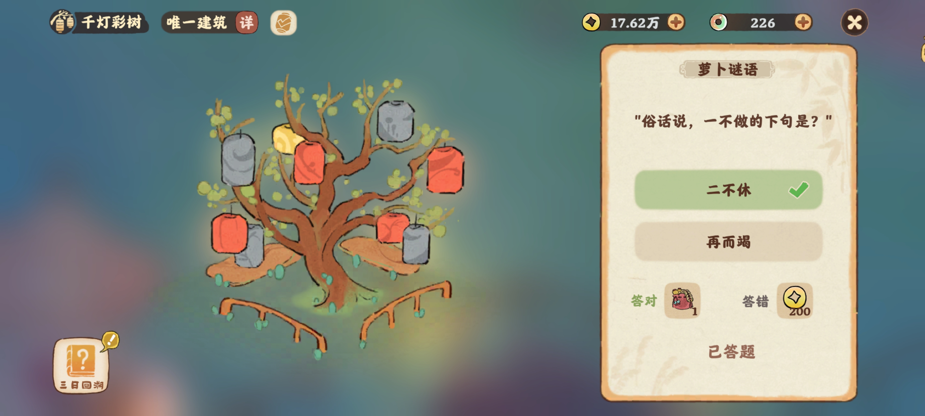 俗话说一不做的下句是?桃源深处有人家的新建筑千灯彩树可以进行谜题答题,大家知道俗话说一不做的下句是?下面为大家带来的具体内容,感兴趣的玩家们千万不要错过哦!