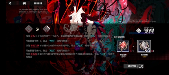 觉醒Lv.4:所有技能等级+2,饰品【“尽头”】 觉醒等级提升。