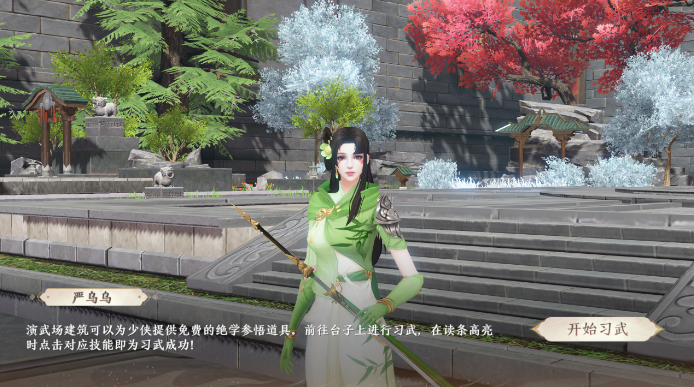 与严乌乌对话并点击【开始习武】后正式进入习武界面。