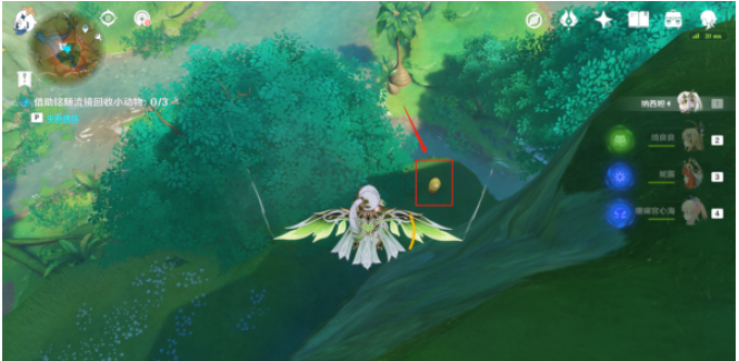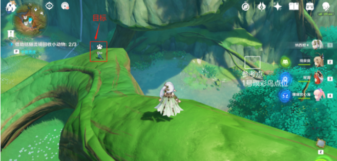 4.暝彩鸟2号点位如上图目标点位所示,在高处的树干上,靠近暝彩鸟后点回收即可。
