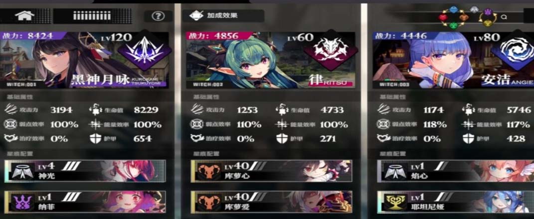 1、灼烧队魔女搭配:安洁+黑神月咏+律/米娅