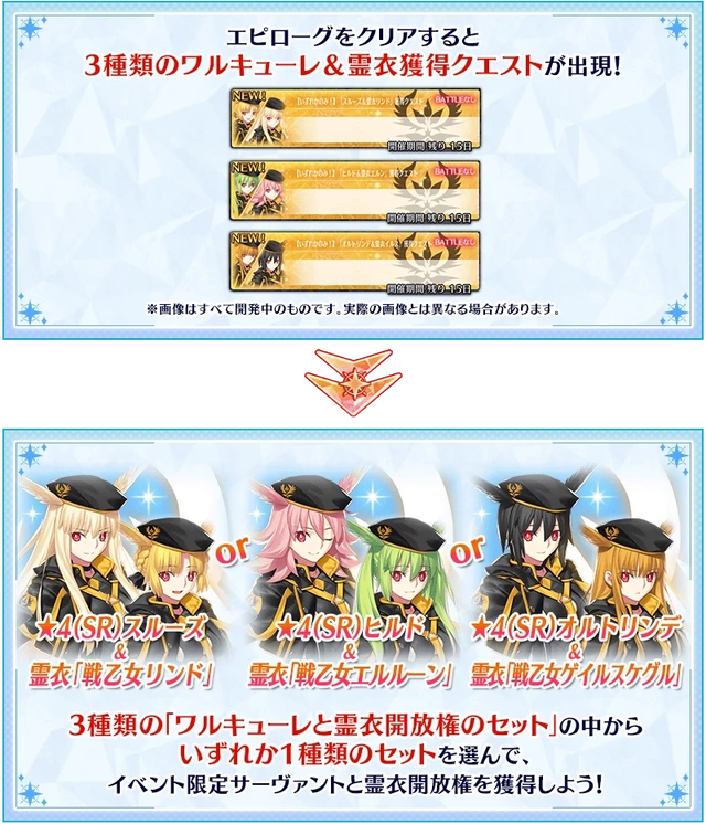 本次活动赠送的四星从者是杀阶的泳装女武神,玩家可以在3个女武神中间选择一个作为奖励,选择之后还可以获得对应的灵衣,为另一个女武神的灵基,不过灵衣为固定搭配,不能自选。