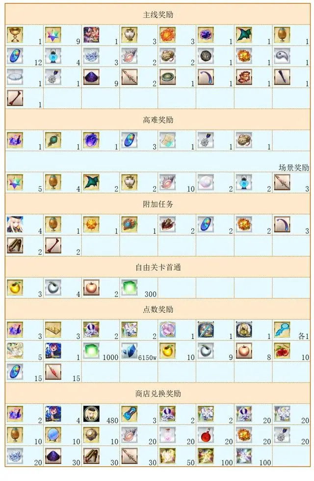 以上是周回关卡的掉落和配置情况。