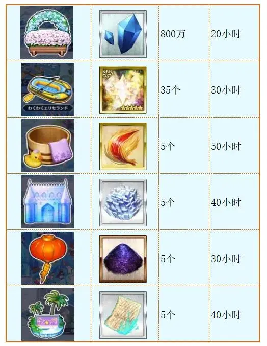 “种菜”的场地一共6个,一开始开启的场地是收QP的,后续随着主线推进和场地建造会有其他场地奖励,包括狗粮、胎毛、冰块、黑灰、书页。每个场地都需要使用活动材料“天然冰”来升级,等级越高可获取的奖励越多,上面的是最高等级可获得的奖励。