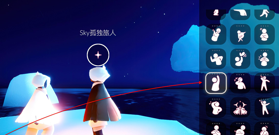 点击屏幕上方中间动作栏 找到招手动作 面对好友 点击并完成即可