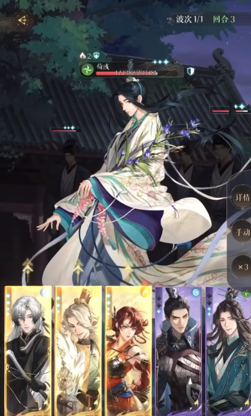 思路:集火荀彧不管小怪,在荀彧第二个大之前打掉他(香2个大+修3个大的伤害),粲修登除了放大都防御,香香多a叠火。需要赌修开局双数和香暴击。
