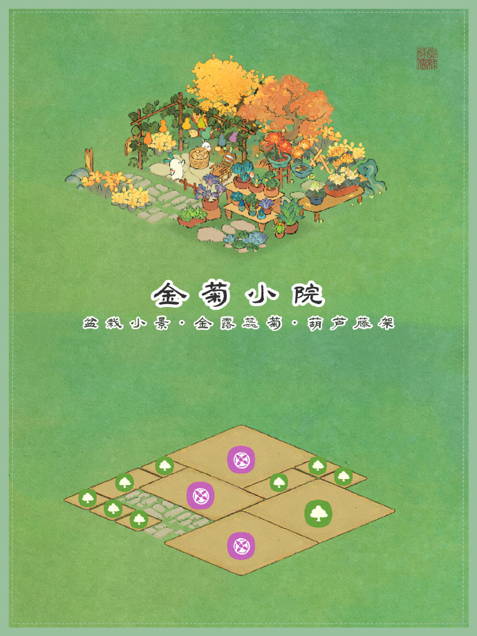 上述就是F4手游网小编给大家介绍的桃源深处有人家金菊小院如何布局 桃源深处有人家金菊小院布局攻略,希望对你有所帮助。
